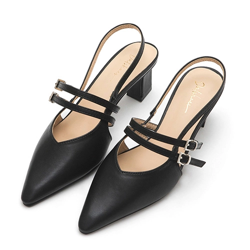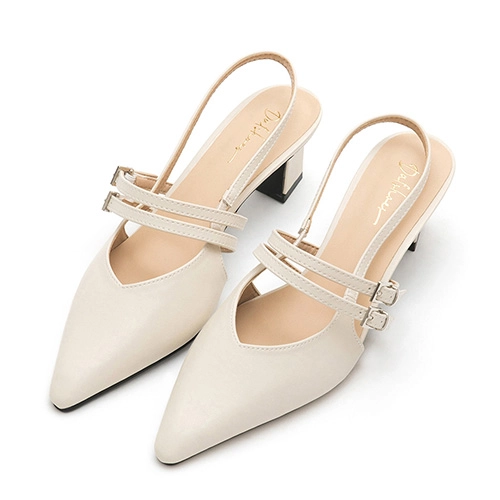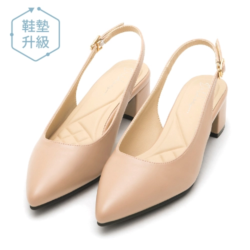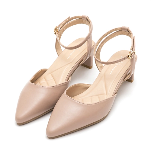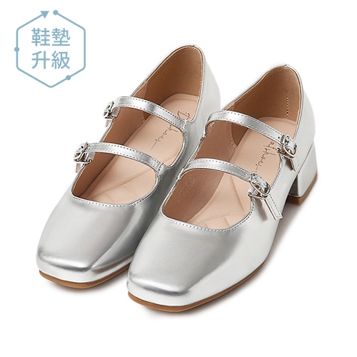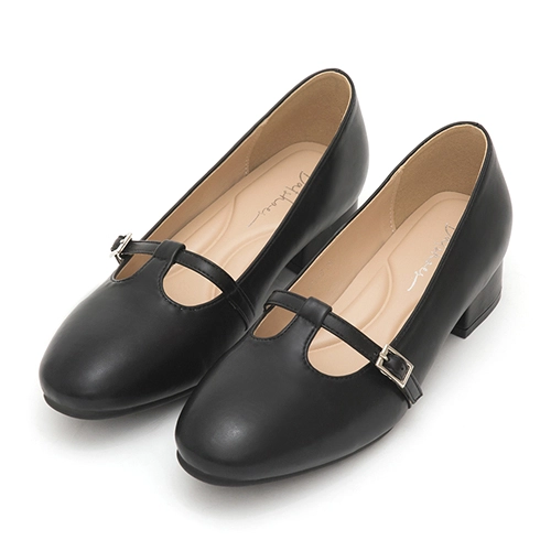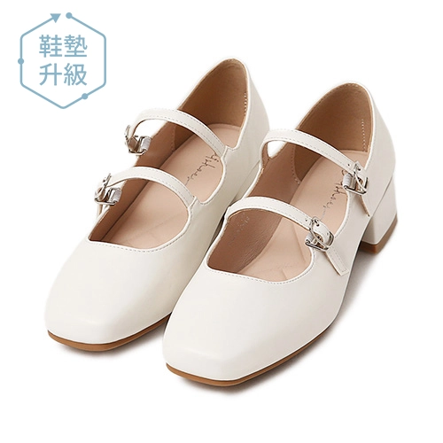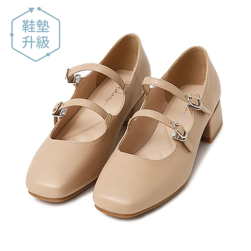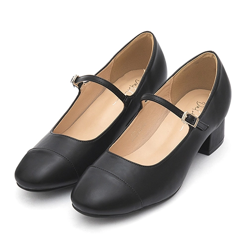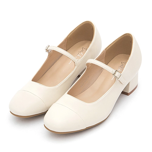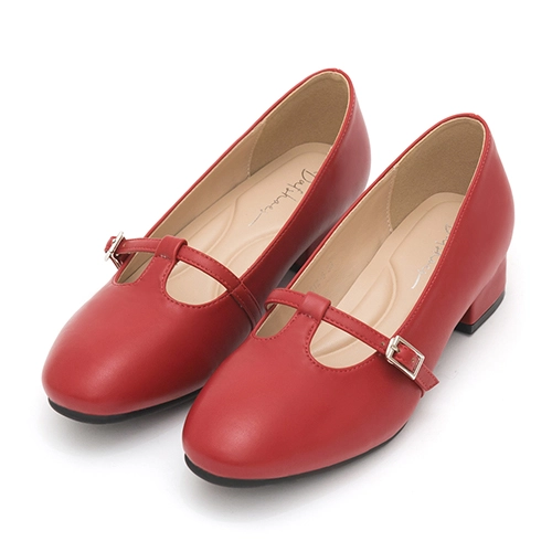 法式甜心.素面細帶中跟瑪莉珍鞋