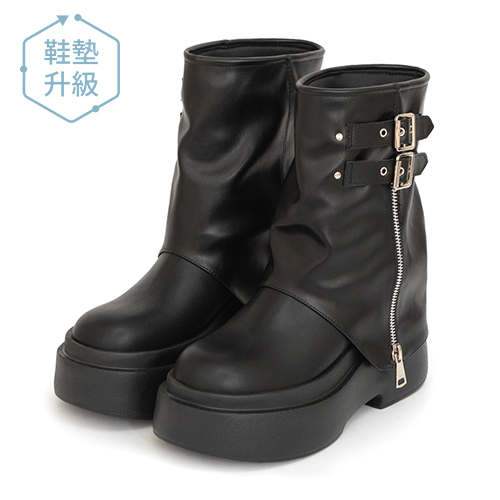 暗黑硬派Plus級加厚鬆糕底褲腿短靴