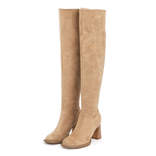 曠野玫瑰圓頭木紋跟堆堆長靴