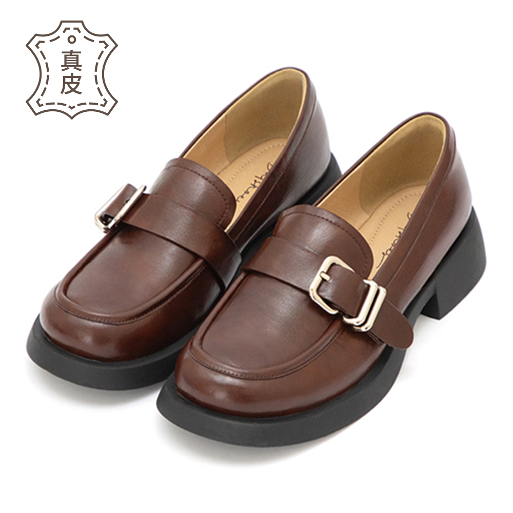 【真皮系列】親膚空氣棉方釦樂福鞋