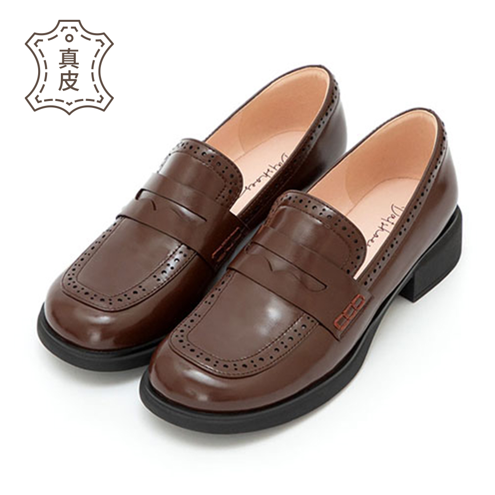 【真皮系列】親膚空氣棉英倫雕花樂福鞋