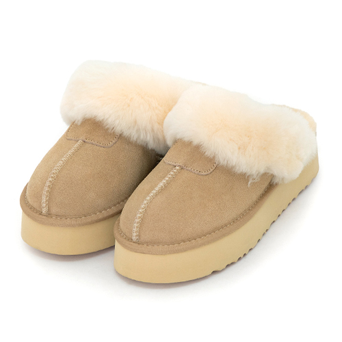 雪地精靈.真皮羊毛厚底雪靴拖鞋