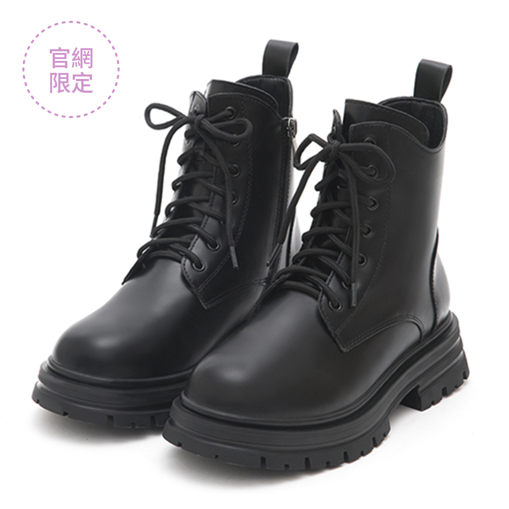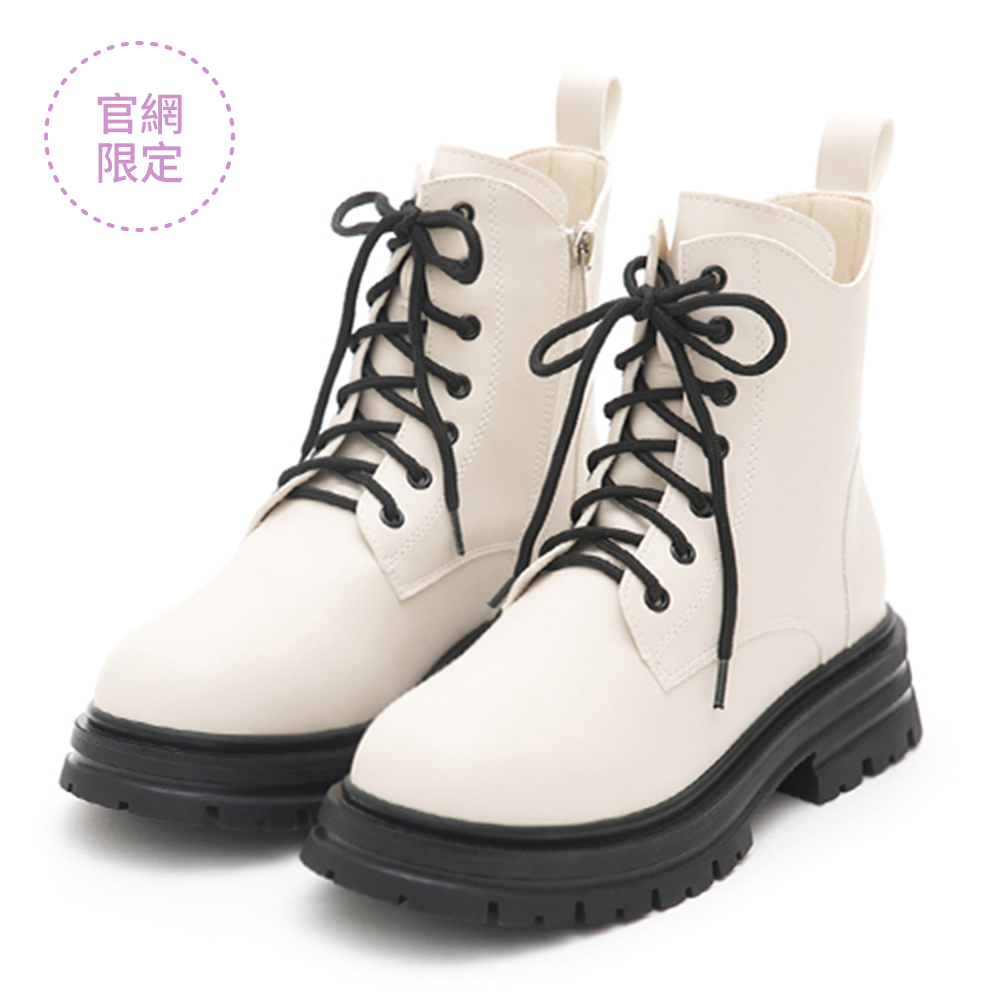 勁酷少女.圓頭加厚底綁帶短靴