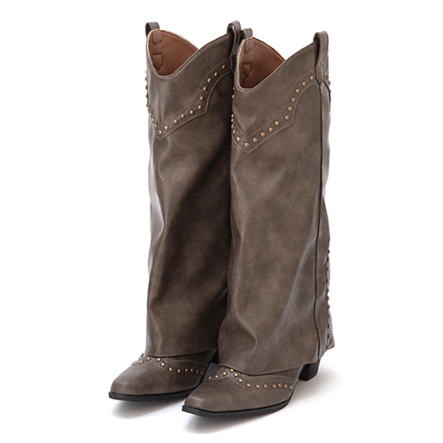 星光鉚釘V口復古西部褲管靴
