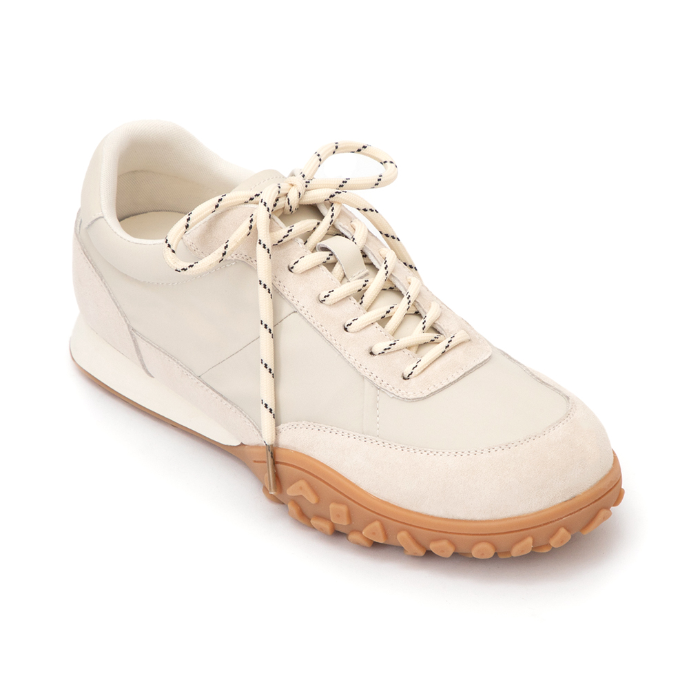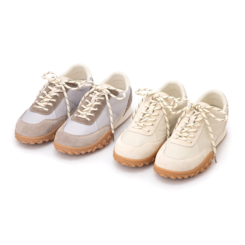 這款休閒鞋選用柔軟真皮結合超細纖機能皮革,提供極佳的包覆感與透氣性。內裡採用真皮搭配 QQ 墊腳,確保穿著時的柔軟舒適度。全系列共推出米白色、藍色、黃色與粉色四種柔和選擇,滿足各種色彩穿搭需求。