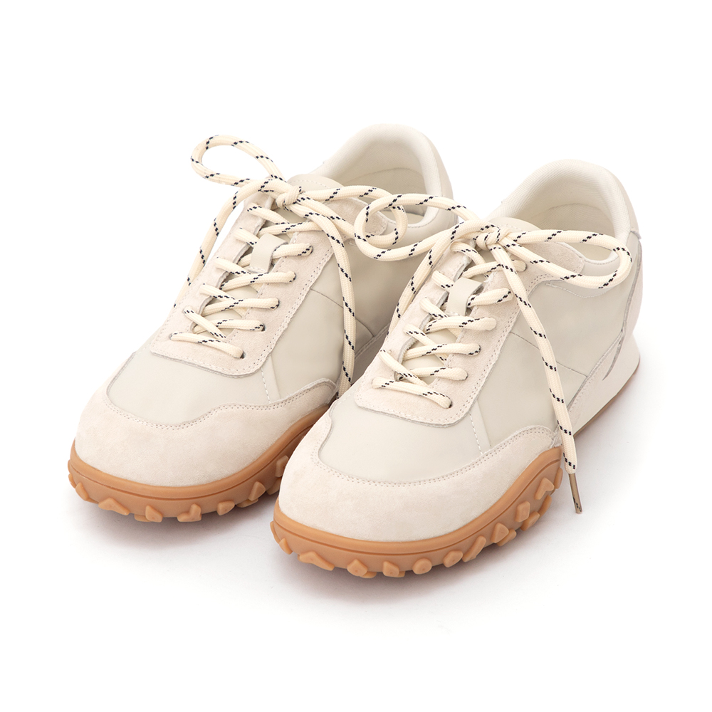 這款休閒鞋以其沉穩的咖啡與杏色調,完美演繹了韓系穿搭中的質感靈魂。雙色鞋帶的色彩堆疊,讓整體視覺更具豐富細節。建議搭配大地色系的套裝,輕鬆營造出充滿氣質的美拉德風格,是日常上班與跑咖行程的最佳拍檔。