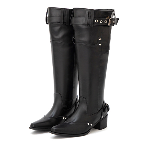 全場焦點絨面釦環尖頭中筒靴