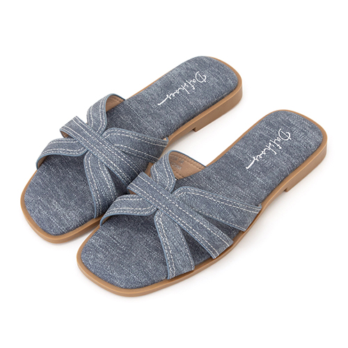 慵懶假期立體車線平底拖鞋 牛仔藍