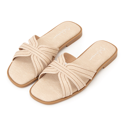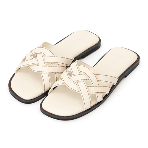 慵懶假期立體車線平底拖鞋 米白