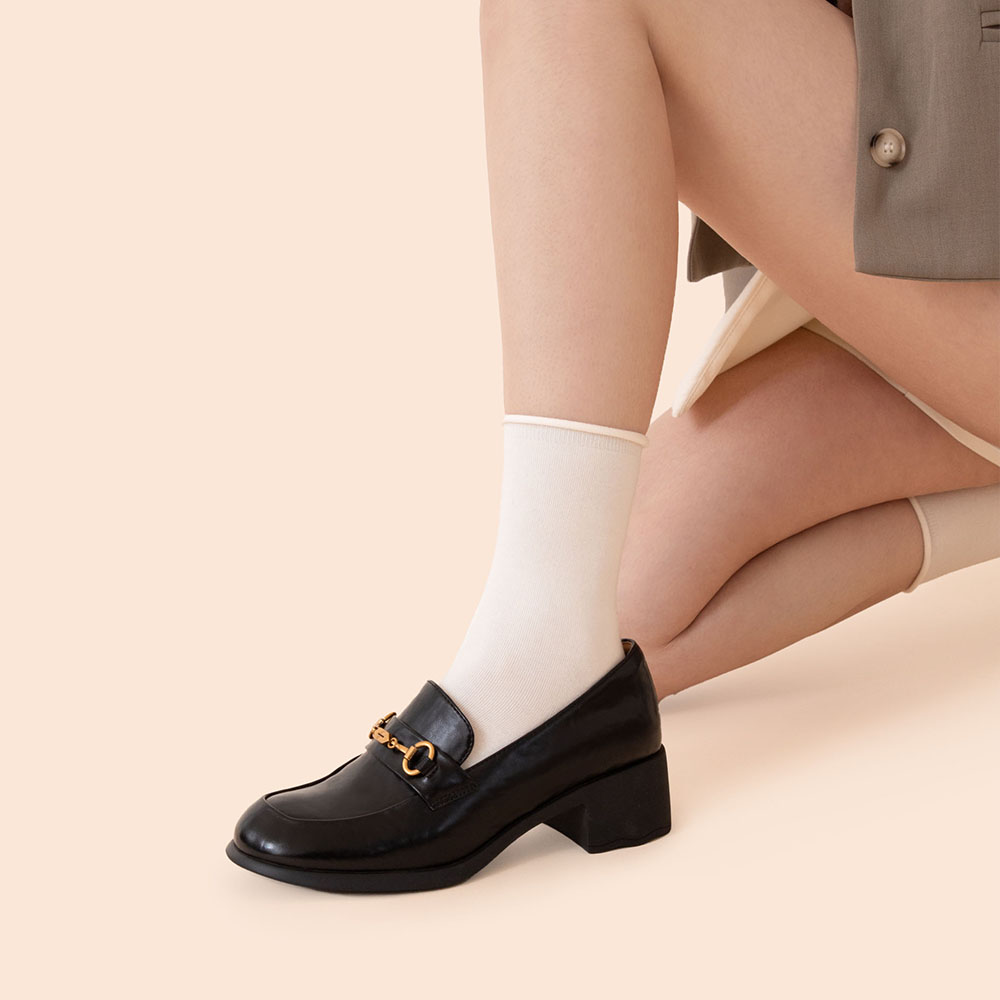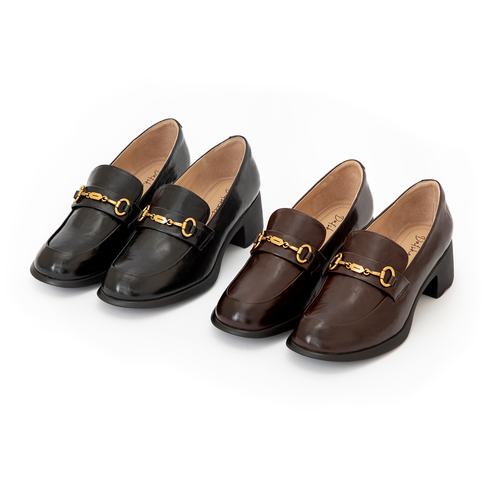 【真皮系列】波浪靜音跟馬銜釦樂福鞋