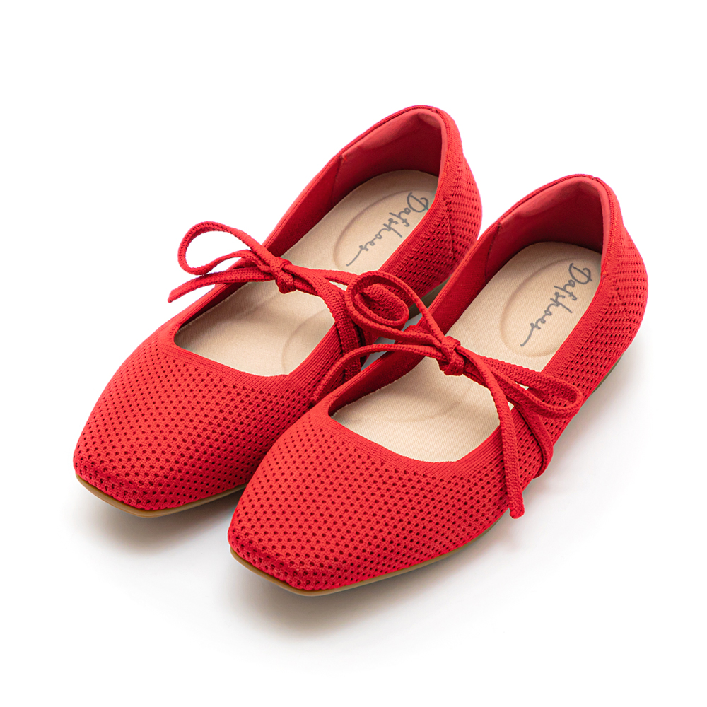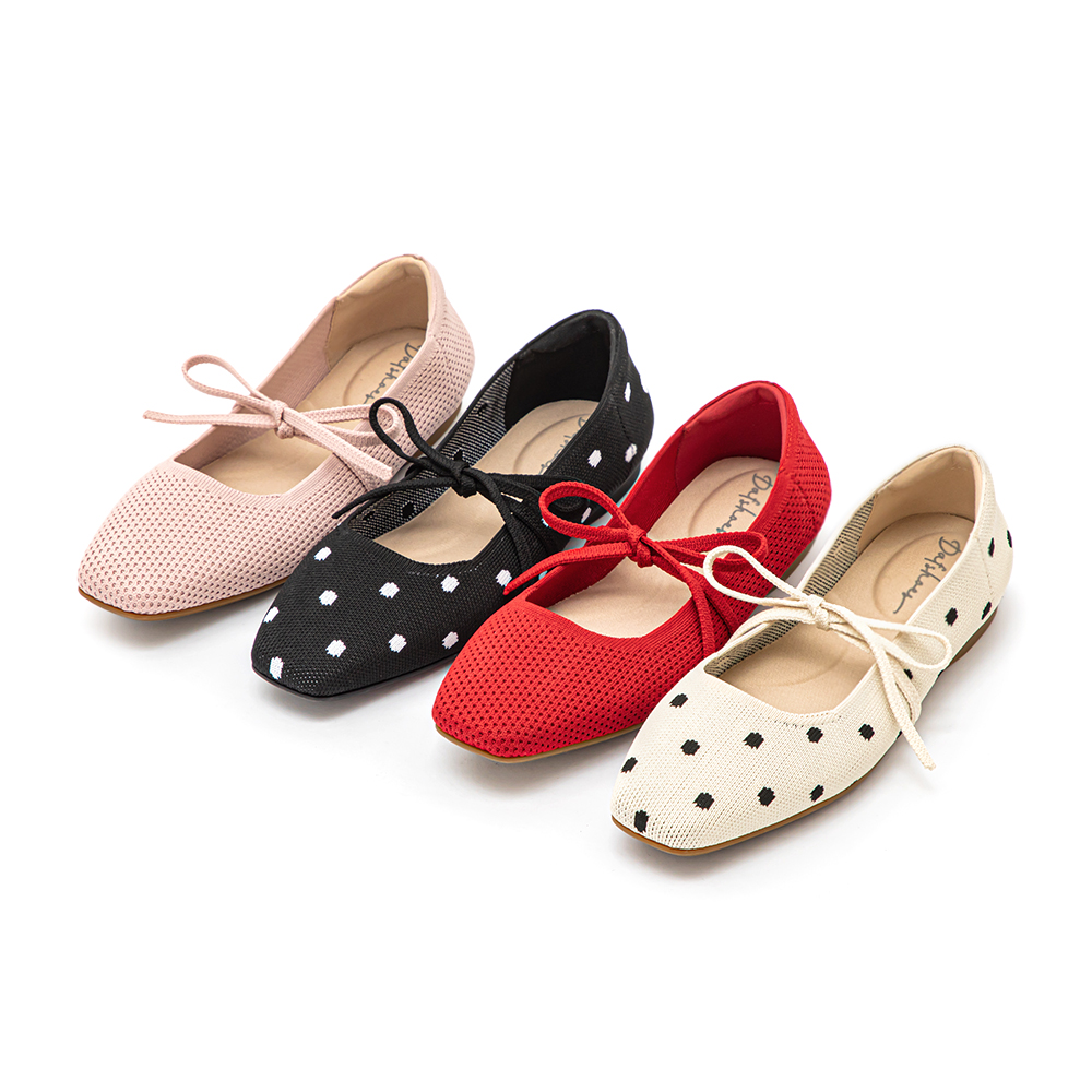 【3D零感雲織鞋】蝴蝶結方頭芭蕾鞋