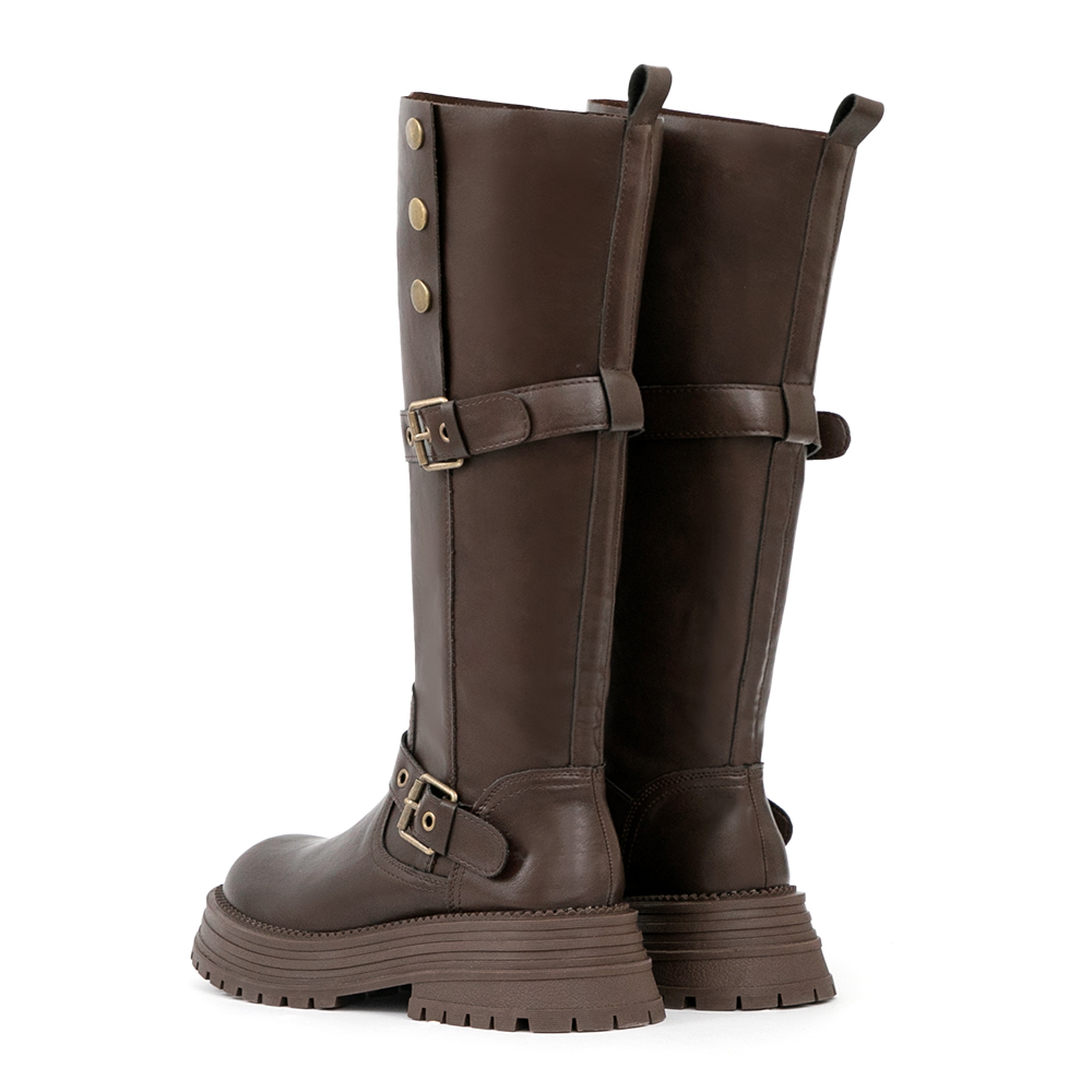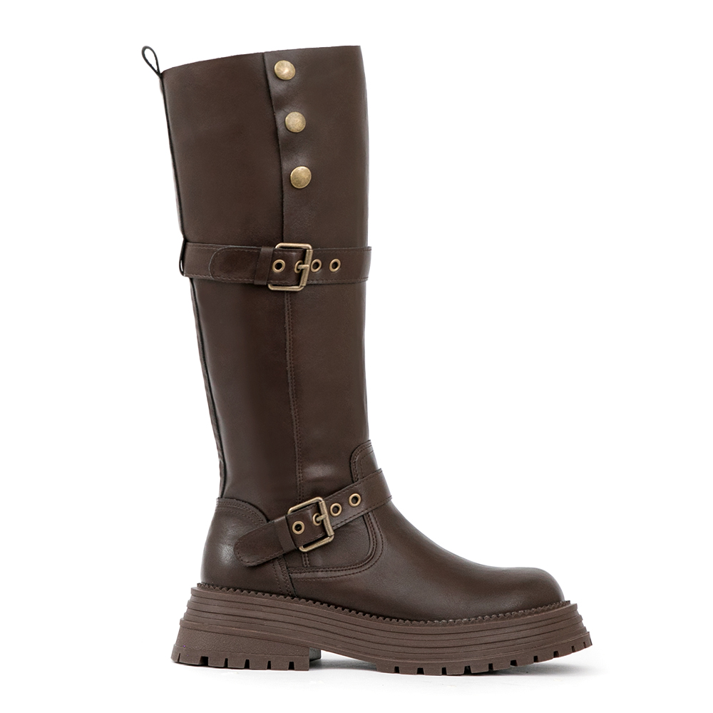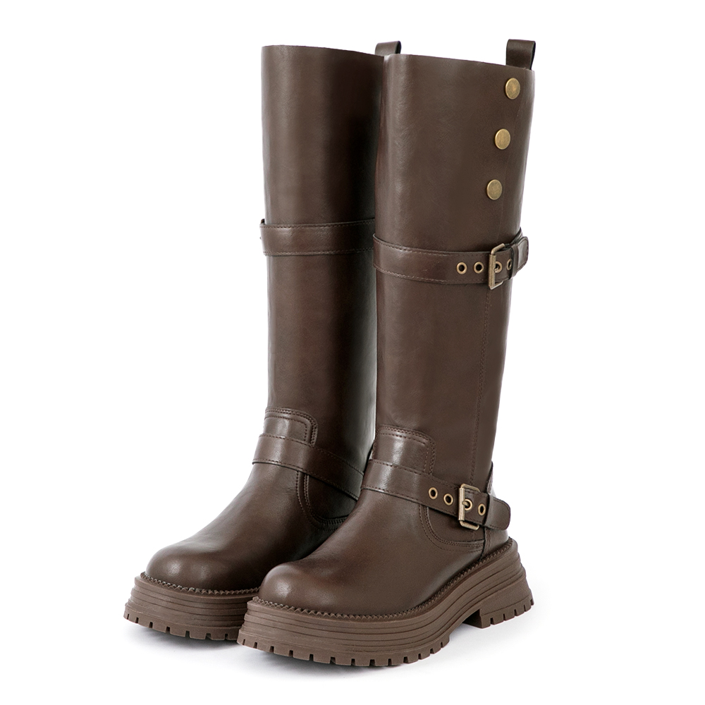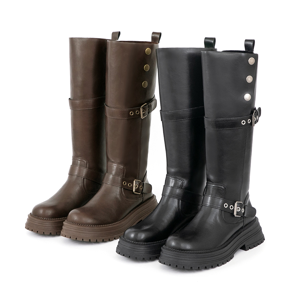 復古騎士釦環排釦機車長靴
