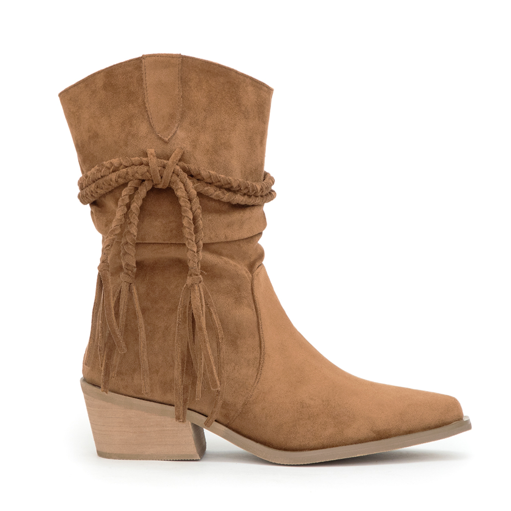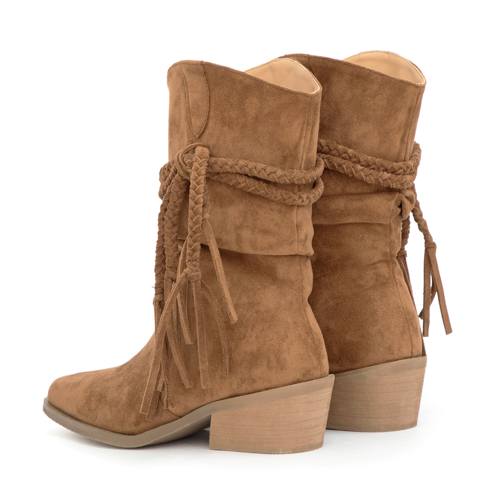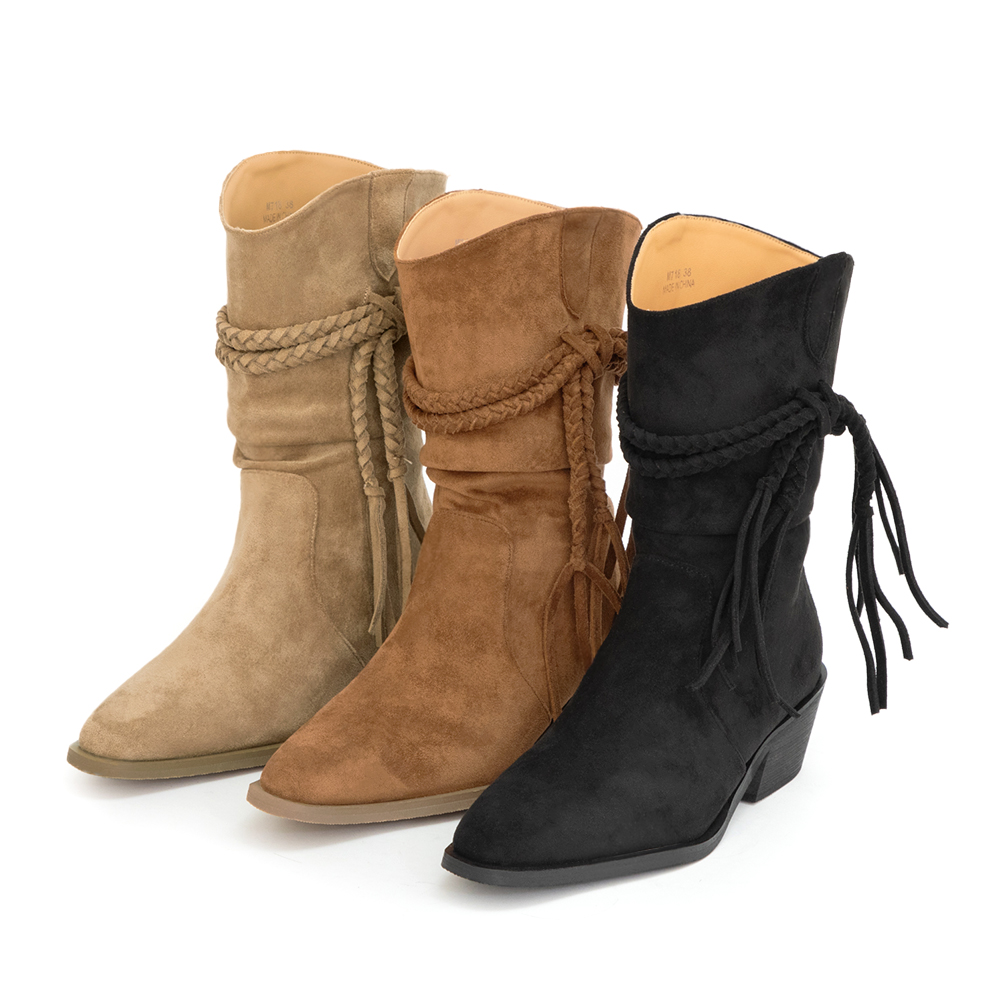 帶著一點自由不羈的靈魂,這雙短靴就是秋冬穿搭的亮點。流蘇細節讓每一步都帶出動感,配短褲展現率性,搭短裙則多了幾分浪漫。