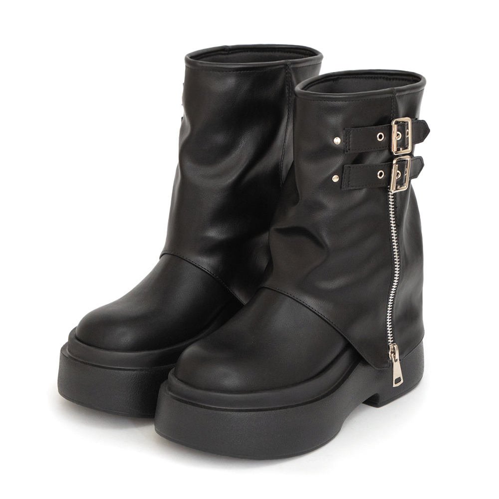 暗黑硬派Plus級加厚鬆糕底褲管短靴