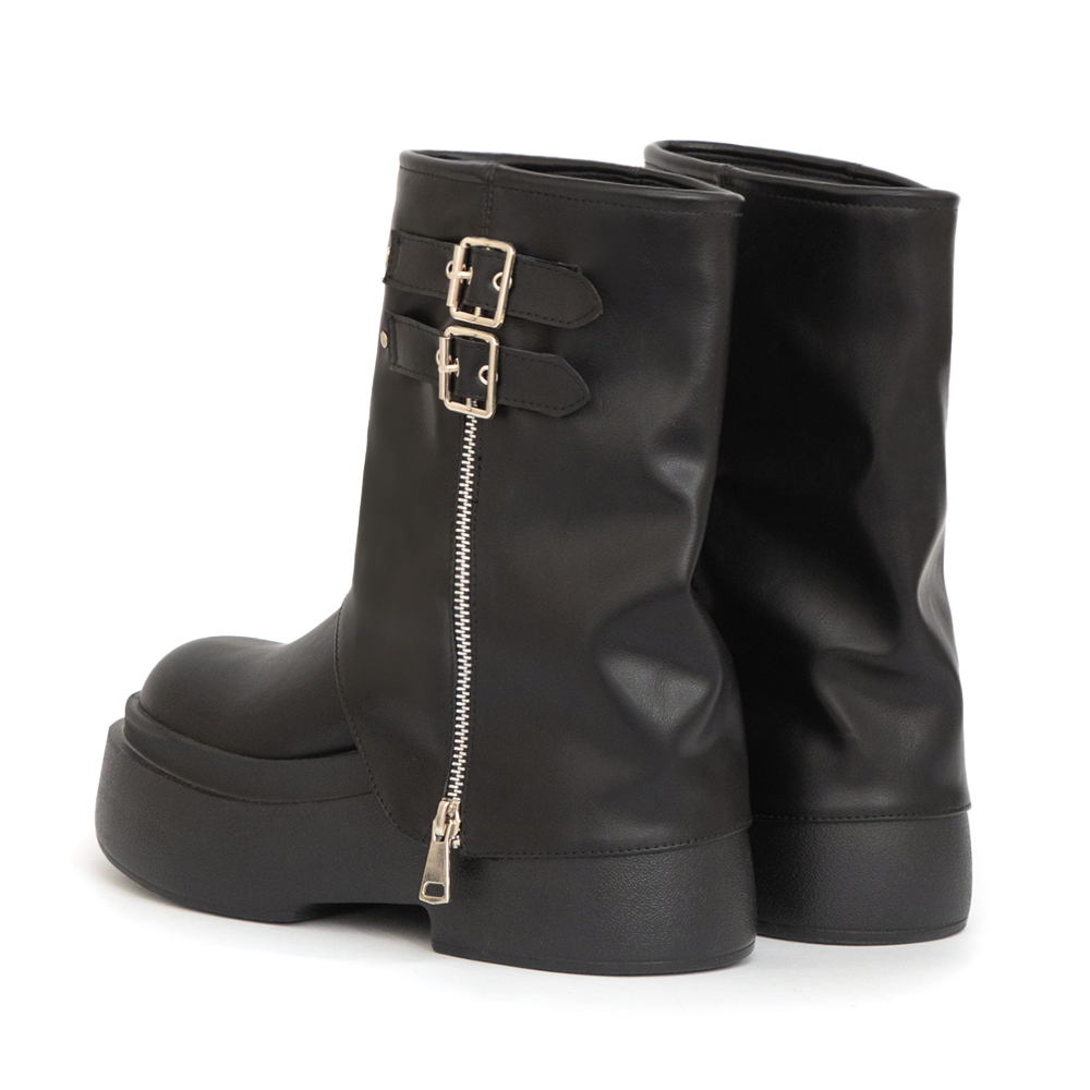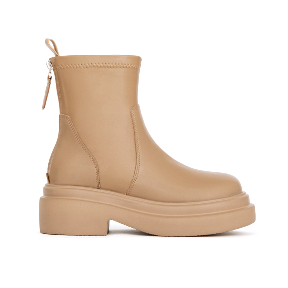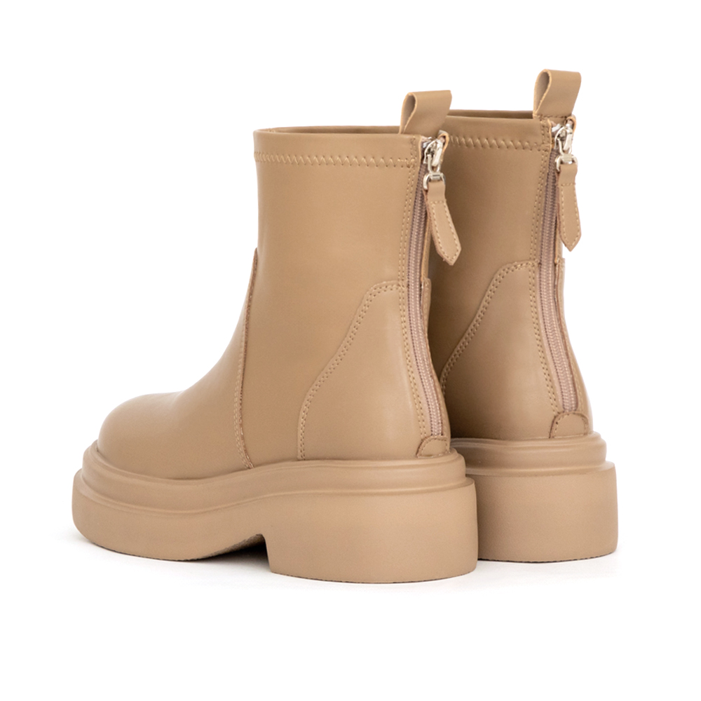 想顯高卻不想犧牲舒適?這雙輕量厚底短靴完美平衡。6.5cm的厚底設計瞬間拉長比例,配短裙或皮褲都能穿出俐落線條。