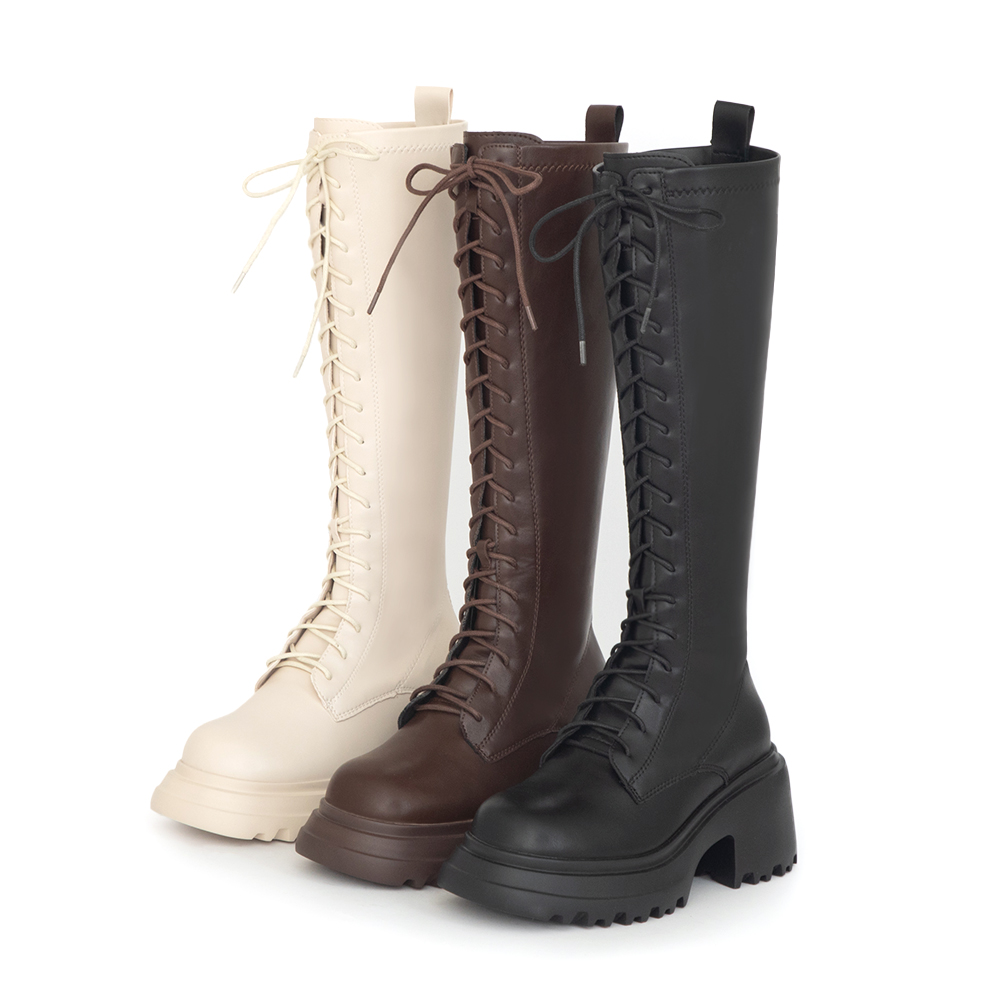 女團風輕量厚底綁帶長靴