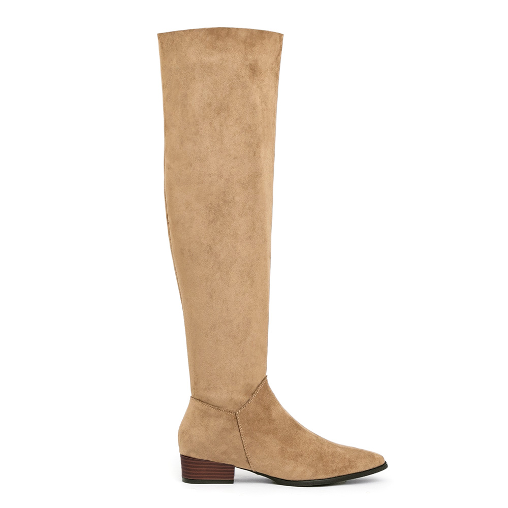大地色麂皮搭配小V剪裁修飾腳踝,內側拉鍊設計讓穿脫更便利。鞋墊升級好走,是能陪你從城市走到週末野餐的百搭靴款。