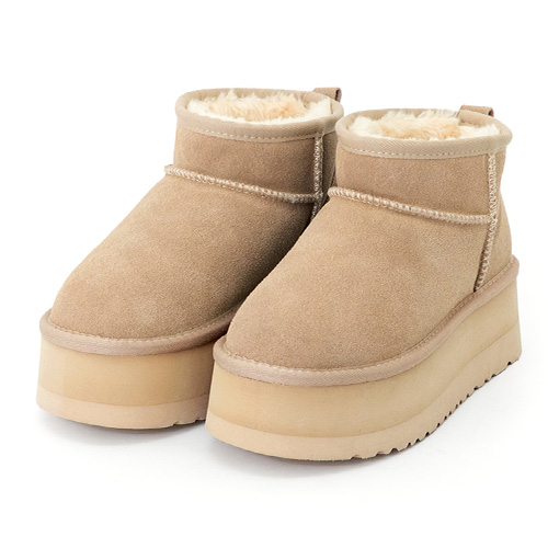暖暖泡芙厚底翻毛真皮雪靴