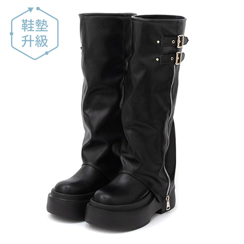 【加寬筒圍】明星舞台輕量加厚底長靴